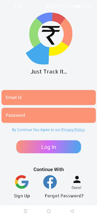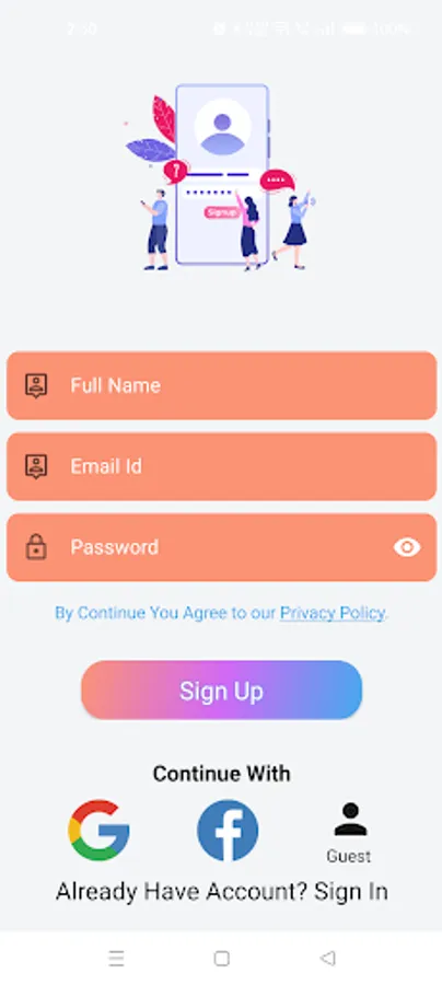 2. Sign In Via Facebook or Google or Email and Password