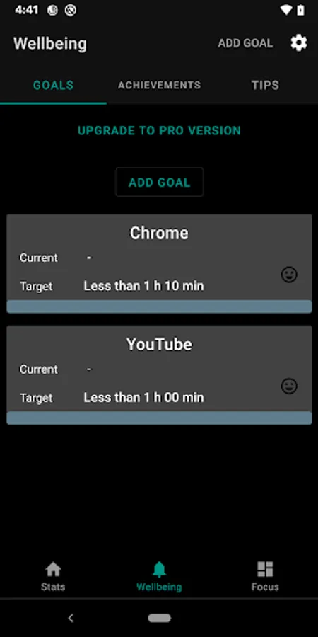 - Set Goals and block apps which cross a certain time set by you.