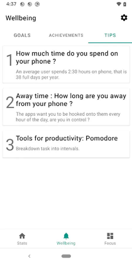 - Helps you in being productive by notifying your usage weekly or daily when your defined hours are reached. These can be disabled in the settings if you do not need them.