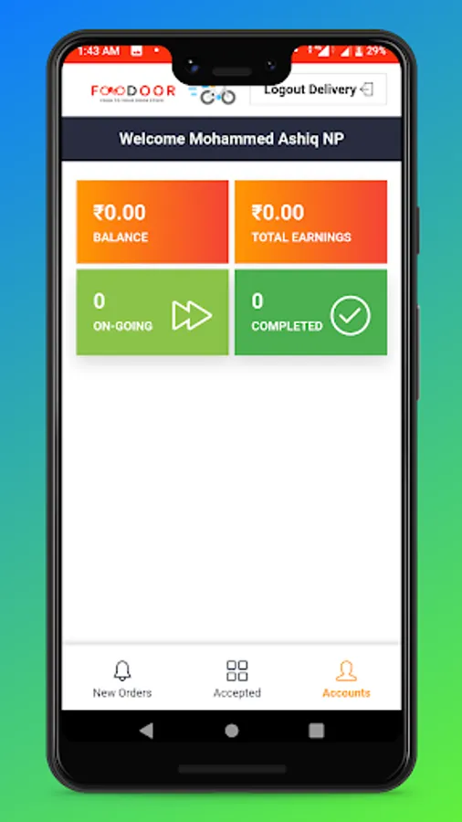 Foodoor Delivery Partners can manage orders and view their earnings.