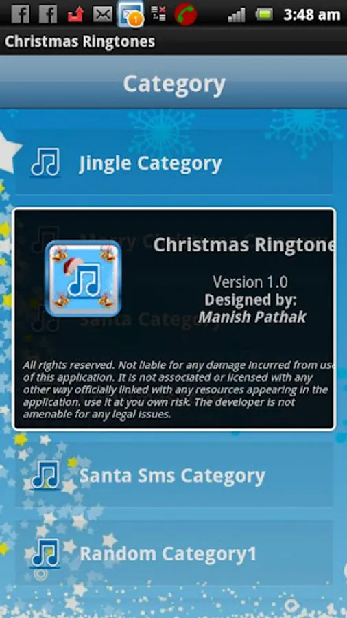 Christmas Ringtones is a free application by which One can personalize the phone's sound.