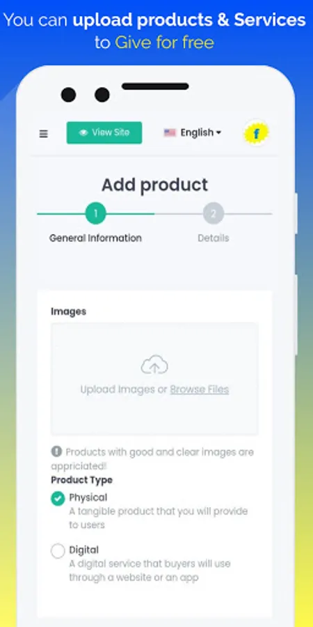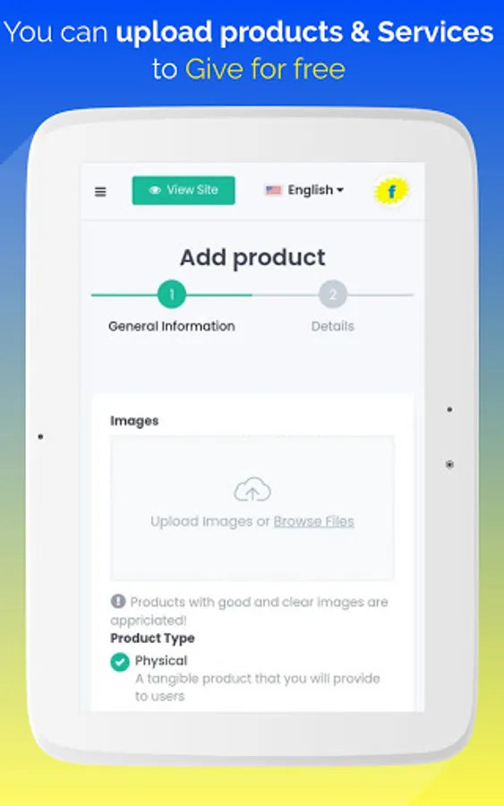 You can also offer freebies simply by clicking on the "Give for free" button and upload the product details and the instructions you want the user to follow in return for providing freebies.