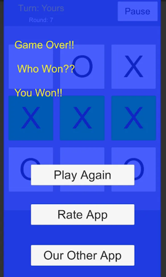 One of the favourite time pass game is Tic Tac Toe Game. Also known as noughts and crosses or Xs and Os game. It helps us to pass the time in a engaging manner. And also it helps to exercise our brain. Now with this app, New Tic Tac Toe Game, exercise your brain and have fun.