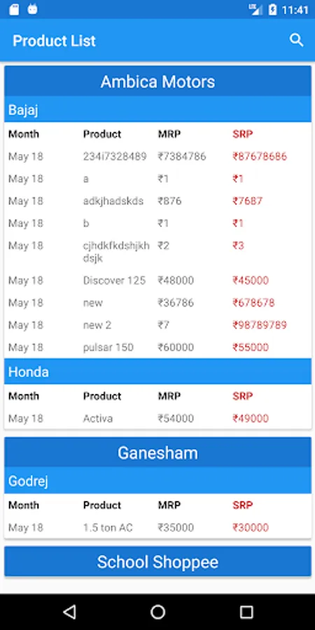 Shreejee Price List Screenshots