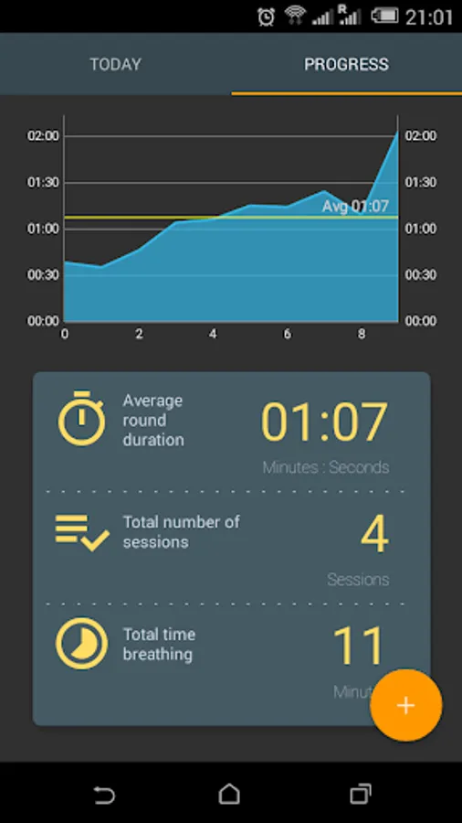 + Simple graphs show how you progress over time and the details of each breathing session