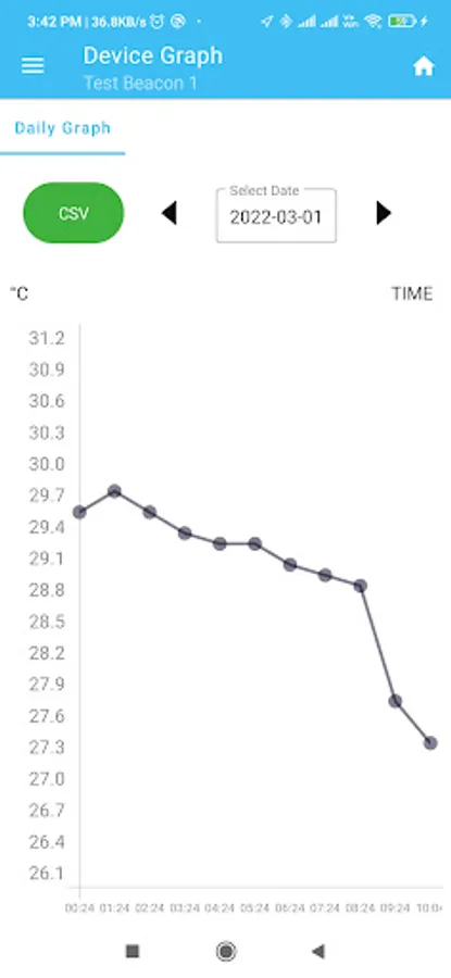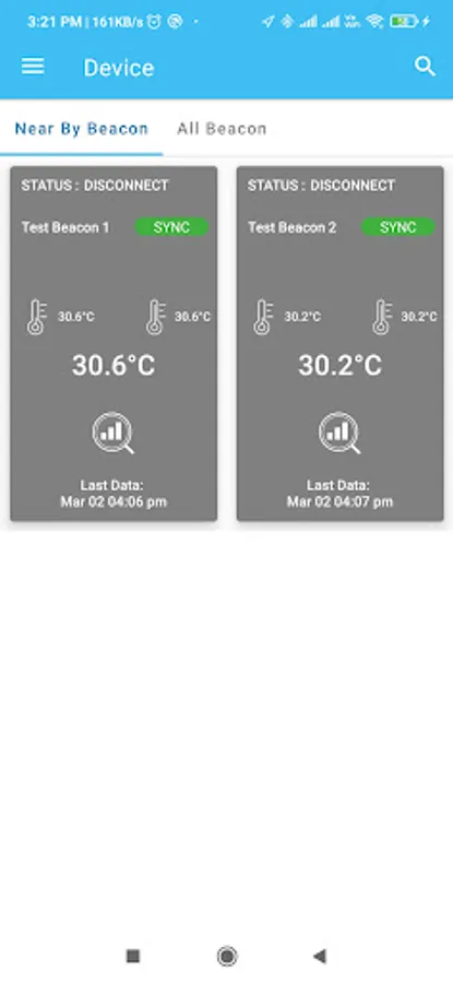 The app connects to sensing beacons, in order to configure them and capture their data. This data can then be viewed as tables and graphs, and also uploaded onto the cloud.