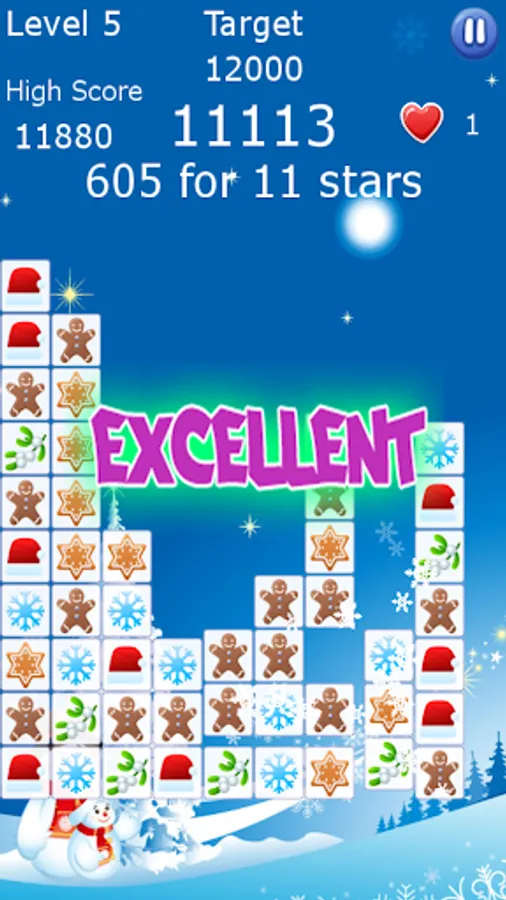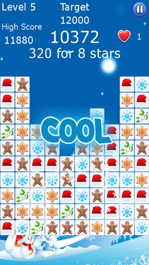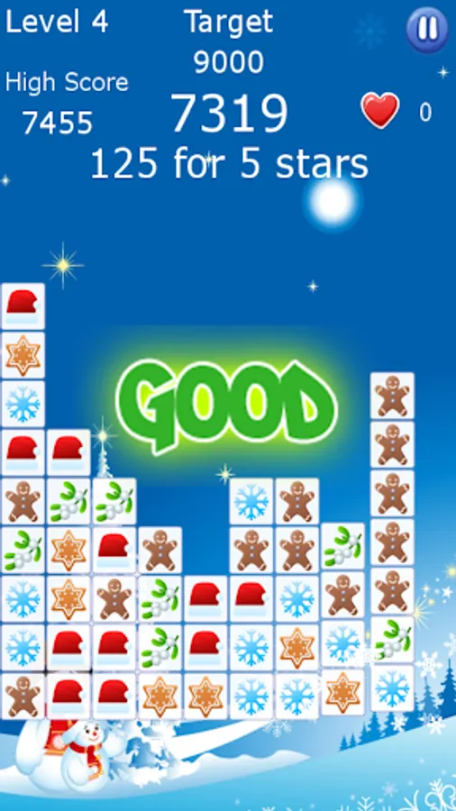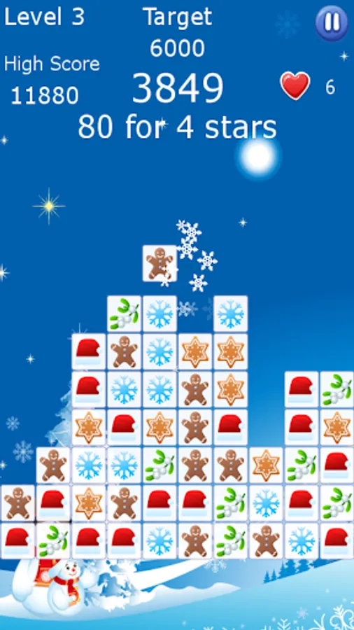 Tap on two or more adjacent Christmas stars, pop Christmas star and crush them, and magic Christmas love could crush single Christmas star.