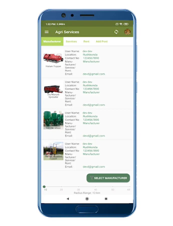 Agri Services: This will help you to get the equipment or machinery needed in the farm. It gives manufacturer details to install the equipment, service providers to service the equipment if it is non-functioning and rent the equipment needed in the farm.
