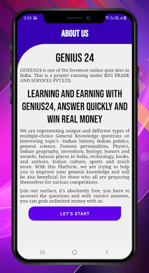 GENIUS24 is one of the foremost online quiz sites in India. This is a project running under RSG TRADE AND SERVICES PVT.LTD.