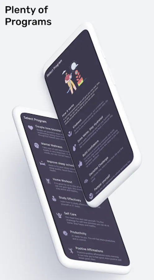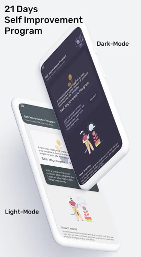 21 days self improvement programs to improve your life. We have created beautiful programs which you can finish at your own pace. Every program consists of 21 tasks. It will help you to build good habits and feel happy.