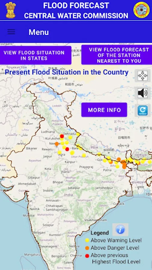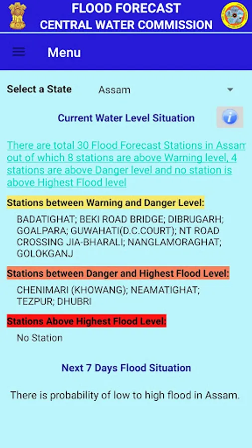 "FloodWatch" is the Official Mobile App of Central Water Commission, Ministry of Jal Shakti, Govt. of India that is specifically designed for dissemination of real-time flood situation and flood forecasts.