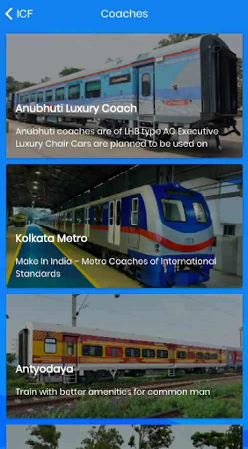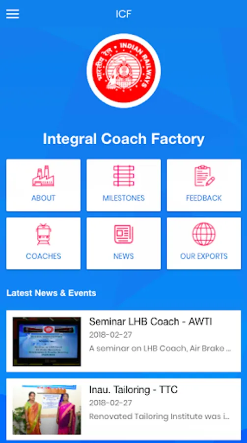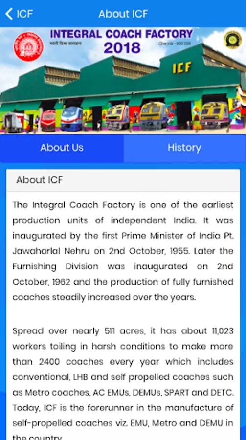 Integral Coach Factory is the premier coach manufacturing unit in Chennai, India. under Ministry of Railways.