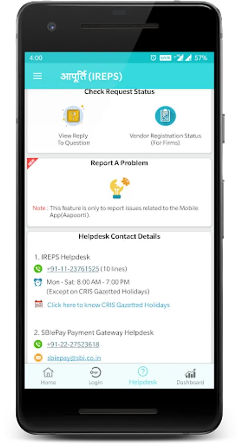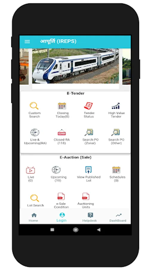 Aapoorti is official mobile app of IREPS application (www.ireps.gov.in). IREPS Mobile app provides information available on IREPS. IREPS application provide services related to procurement of Goods, Works and Services, Sale of Materials through process of E-tendering, E-Auction or Reverse Auction.