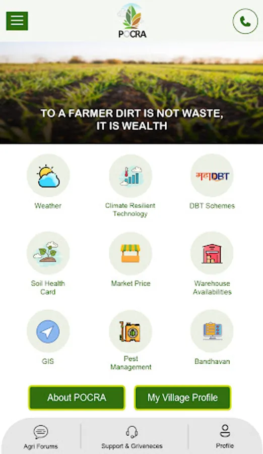 The app provides weather advisories, market rates of multiple crops in various APMC markets, information regarding the availability of nearby warehouses as well as user-specific details of applications made under the Direct Benefit Transfer portal of PoCRA.