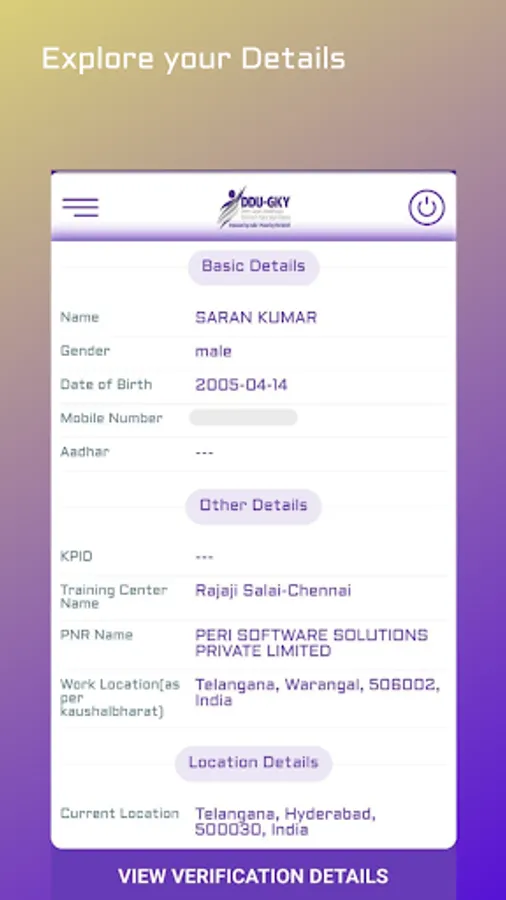 2. Once placement physical verification is completed by verifying officer,The Candidate has to login with mobile number and record the video for authenticity of placement from the placement location using the app.