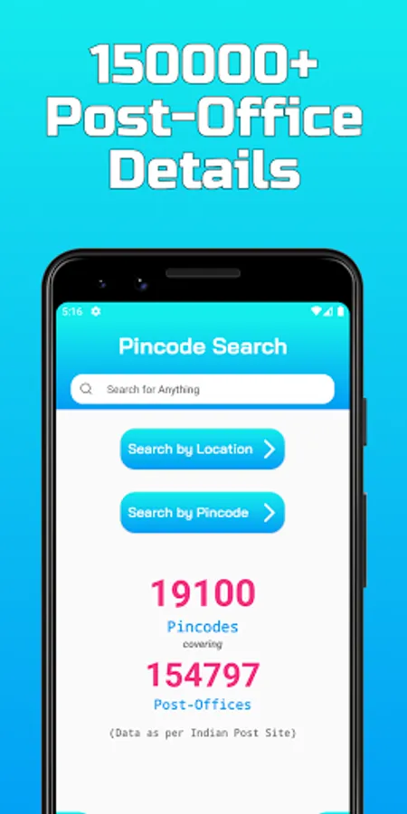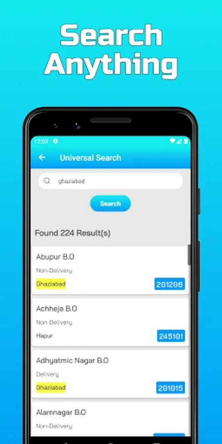 • Universal search feature to search anything and find PIN Code details