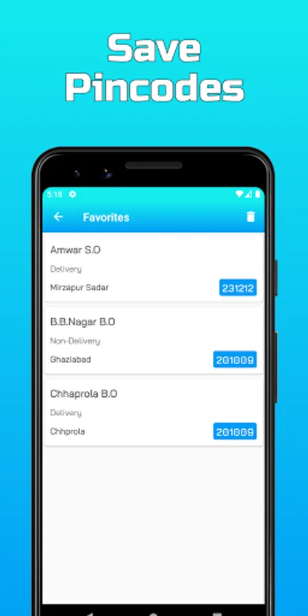 In case of emergency situations, you can get Pincode details of any post office branch in India in few clicks using this app. You don't need to google and find pincode of any location.