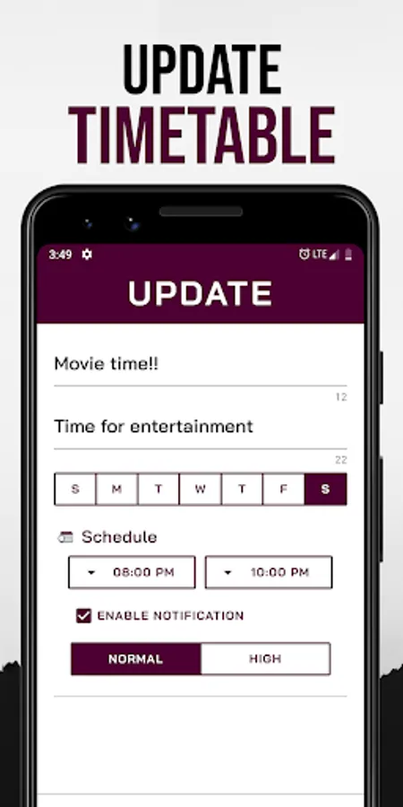 Timetable reminder will remind you of daily tasks and reminder. Set time or types you want to get notifications and receive them on time.