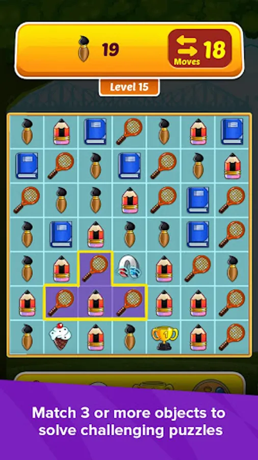 o Unique gameplay: make match-3 combinations with school stationaries,