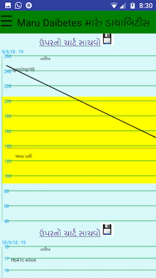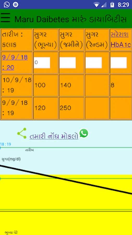 To record and track your Blood Sugar measured by your doctor or yourself use this app. This is a recordbook app that will keep track of your Blood Sugar for years. It will show the record in tabular and graphical forms, which can be stored and share as spreadsheet or image. તમે અથવા તમારાં ડોક્ટરે માપેલ બ્લડ સુગરની નોંધ કરવા અને વર્ષો સુધી સાચવી રાખવા માટેની ગુજરાતી એપ. તમારા મોબાઇલમાં જ (ઓફલાઇન) આ નોંધ સચવાઇ રહેશે અને દર વખતે નવી નોંધ ઉમેરી શકાશે. તમારા ડાયાબિટીસનો ઇતિહાસ કોષ્ટક કે ચાર્ટ સ્વરૂપે જોઇ શકાય અને Spreadsheet તરીકે સાચવી પણ શકાશે. આ નોંધ કે ચાર્ટ શેર પણ થઇ શકશે.