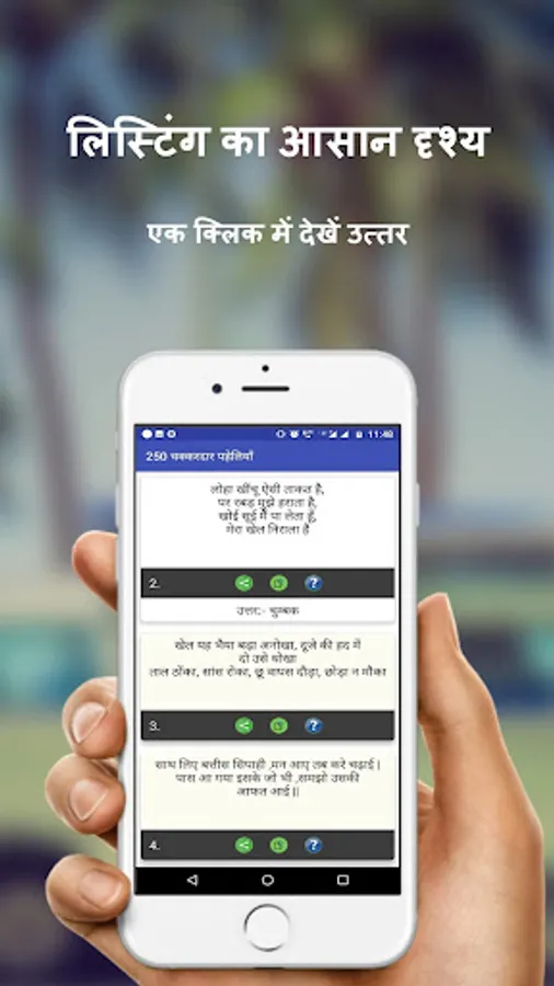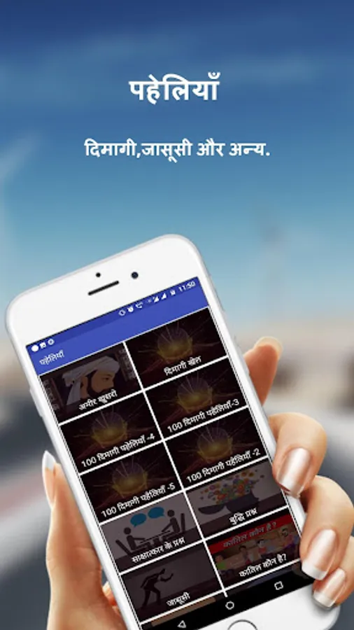 App contains collection of Paheliyan in Hindi which is associated to our daily life, Enjoyment , Logics , mathematics puzzles, riddles etc.