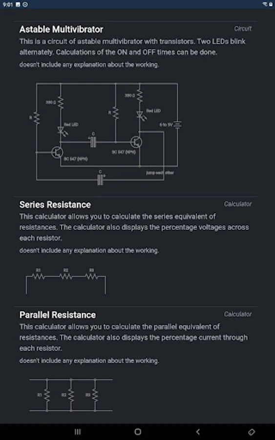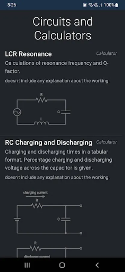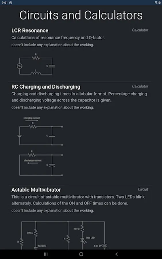 Electrical basic circuits and for interactive calculation of values of electrical components for circuits such as series, parallel R, RC and RLC circuits.