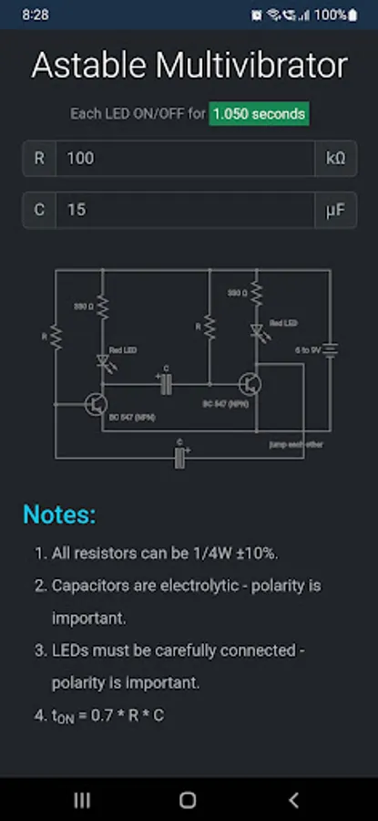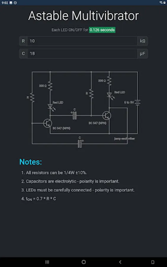 3. Astable transistor based multivibrator calculator