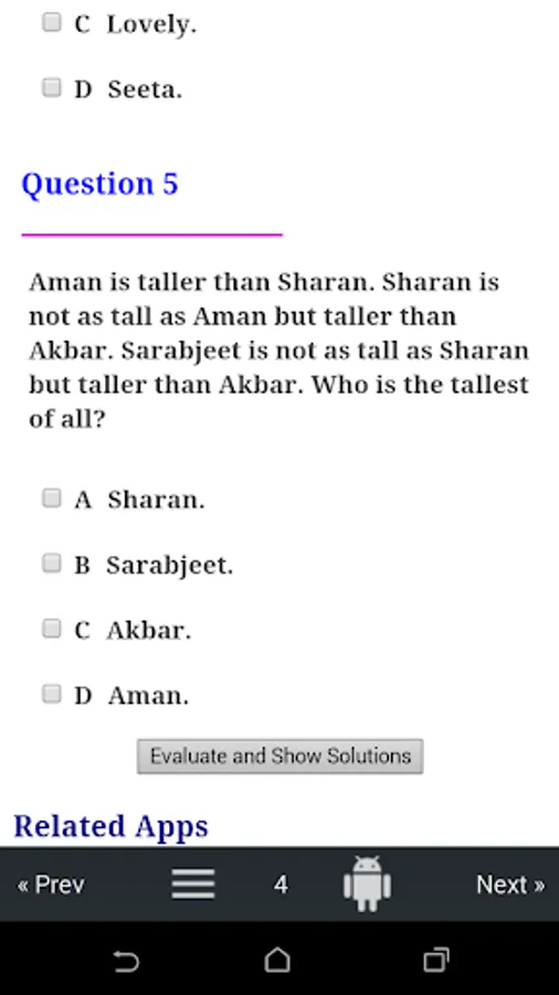 NO INTERNET REQUIRED. APTITUDE QUIZ AND MENTAL ABILITY QUESTIONS.