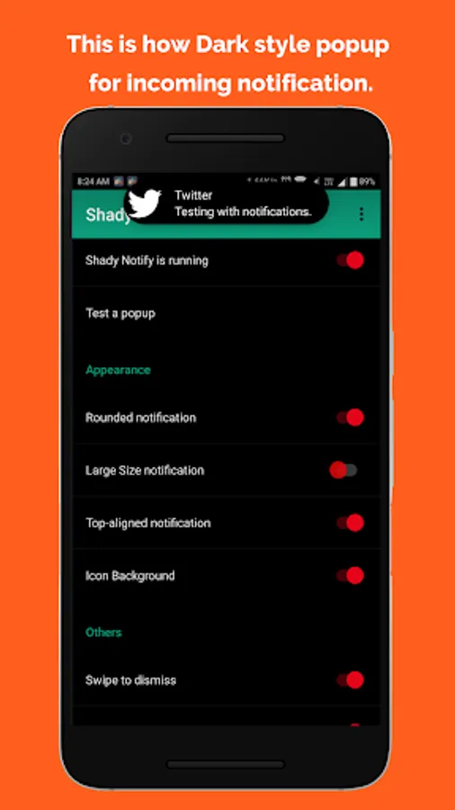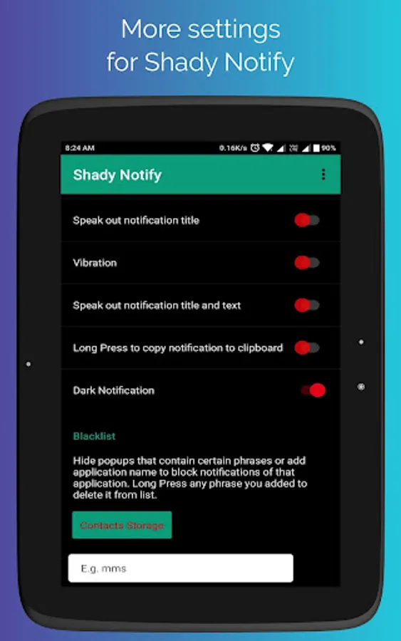 2) You can activate TTS mode for title and subtext, with this app read aloud all Titles and subtext of Notifications.