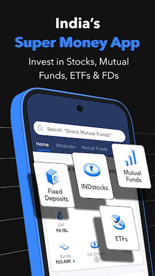 - Invest across large cap, mid cap, small cap stocks & ETFs