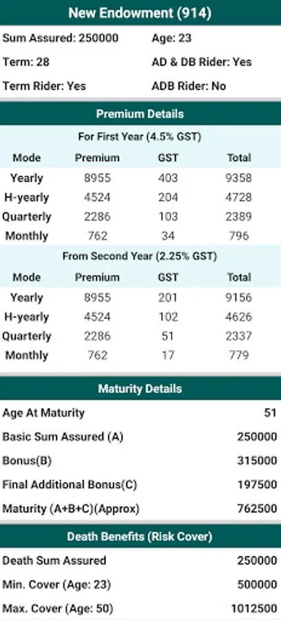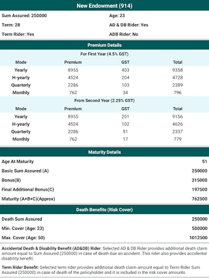 Easy premium calculator helps to calculate premium, maturity, risk cover, moneyback for all plans. The prime objective of this calculator to help policyholders and advisors to learn about policies and choose best for them.