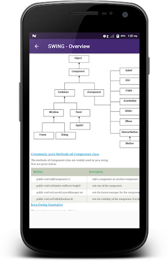 ► This App is designed for software professionals who are willing to learn JAVA GUI Programming in simple and easy steps. This App provides great understanding on JAVA GUI Programming concepts and after completing all lessons you will be at an intermediate level of expertise, from where you can take yourself to higher levels of expertise.✦