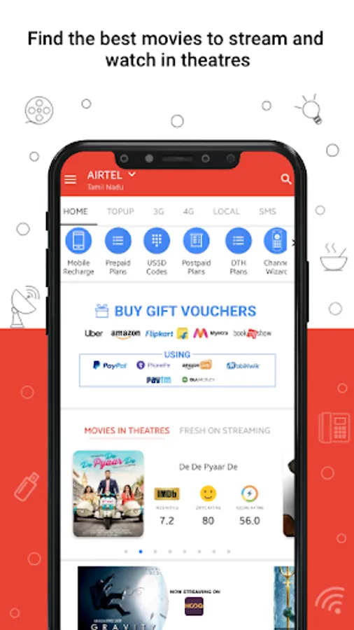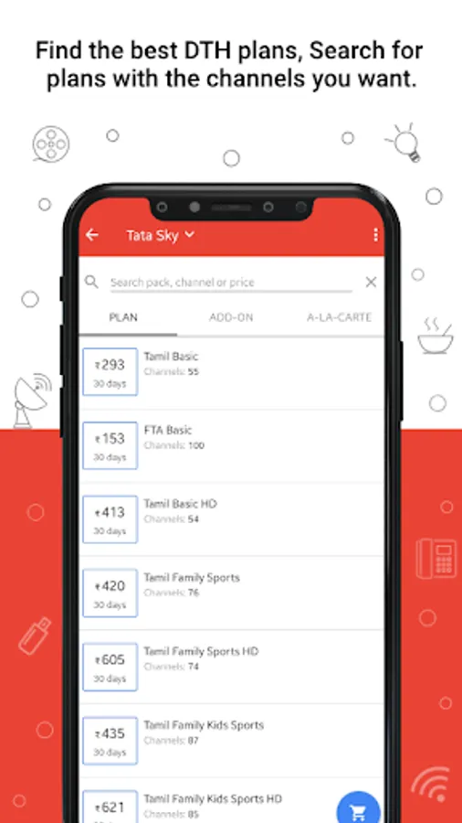 DTH recharge with exciting deals available for Tata Sky, Airtel DTH, Dish TV, Reliance Big TV DTH, Videocon D2H & Sun TV DTH. It also supports DTH activation & online recharge option.