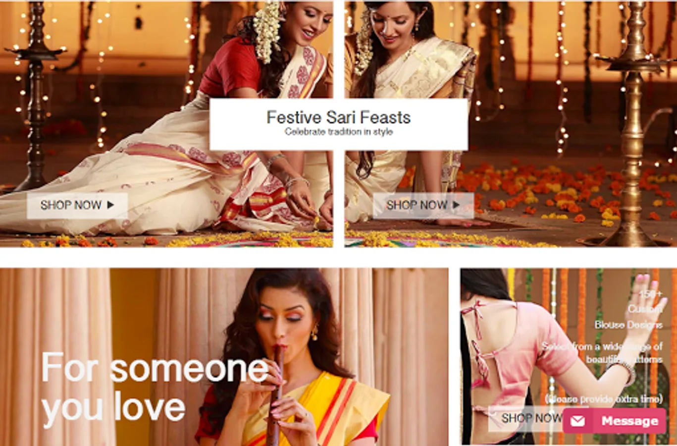 · Rich Catalog Imagery: View saris in multiple views, with options to zoom for finer details