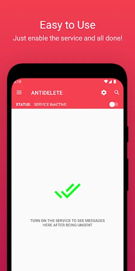 1. Launch the Antidelete application and activate the service by toggling the switch located at the top right corner.