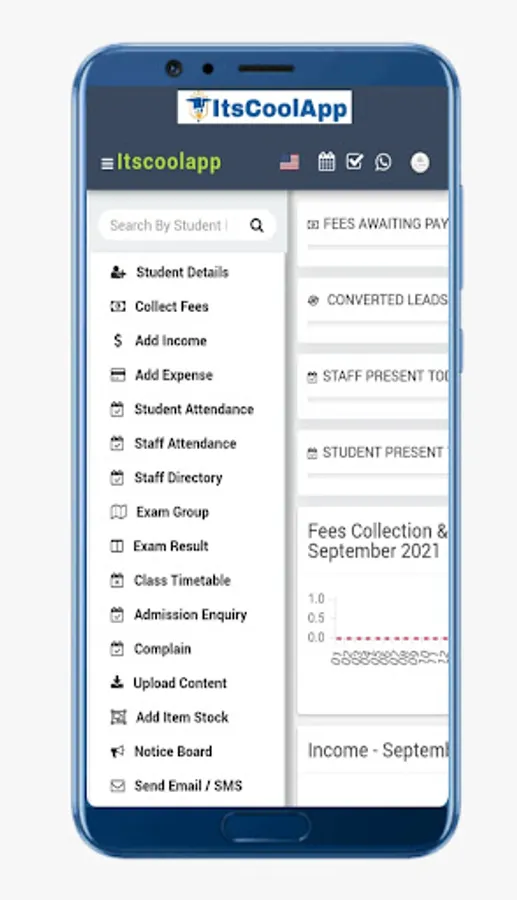 Income - for all the income other than fees collection can be manage here like add income, search income, income head