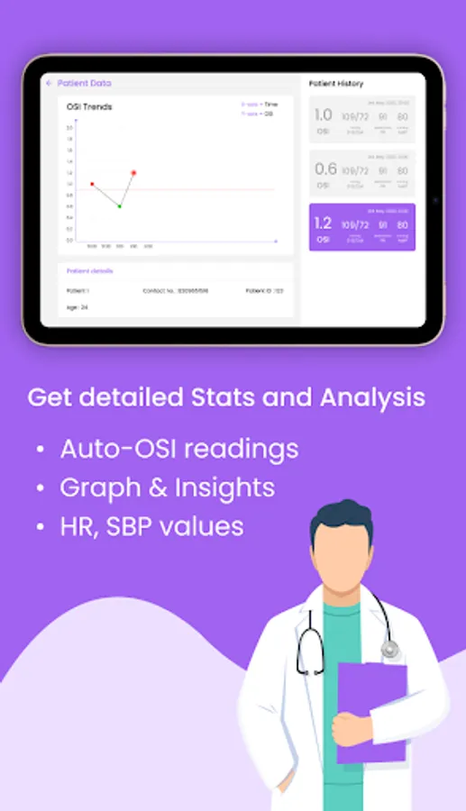 JANITRI: DAKSH SI is a powerful app that helps you monitor postpartum hemorrhage risk by giving OSI value at particular time intervals. With just three simple steps, you can get detailed stats and analysis, that includes auto-OSI readings, graph & insights, heart rate, and systolic blood pressure values. You can also easily access patient records, such as viewing patient details anytime anywhere, checking past OSI trends, and prioritizing care based on OSI values.