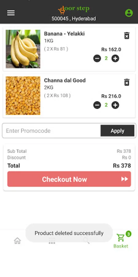 Door Stepss is a fruits, vegtables and groceries delivery app in Hyderabad, Telangana. Where you can order the daily products needs which will be supplied quickly within 2 to 4 hrs