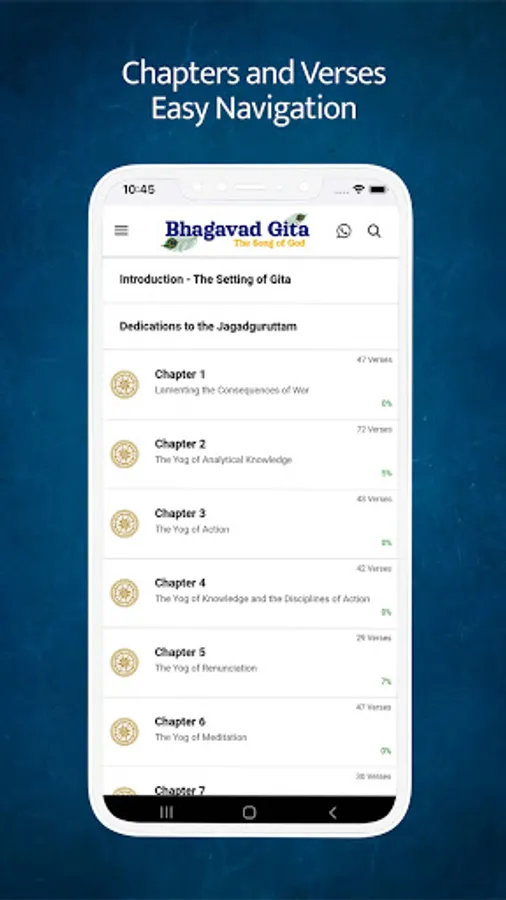 1. Navigation of chapters and verses made real easy with a user-friendly interface.
