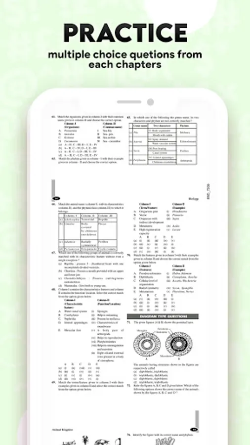 Biology - Chapterwise Objective Questions for comptetive exams such as NEET, AIIMS, JIPMER and many more covering complete syllabus of NCERT based 11th and 12th standard. Variety of question are compiled for better understanding and practice. A total of 38 chapters with about 3600 MCQs for NEET biology are available in this application.