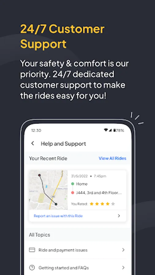 🛺 100% Transparency: No hidden charges; you can check the rate card to know the breakdown of your Ride. Rate the Ride and give feedback for improvement.