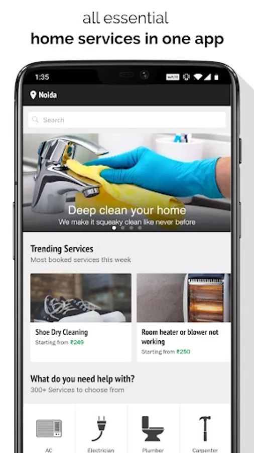 • 300+ Home Services: Complete range of home services such as pest control, car wash, electricians, plumbers, home cleaning, CCTV repair, AC repair and more available instantly.