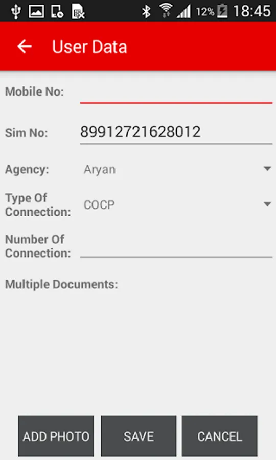 3)Add details like SIM number, mobile number, type of connection Vendor name in the application.