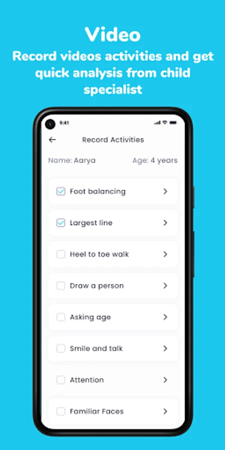 Record a couple of video activities of your child such as writing, speaking, balancing.