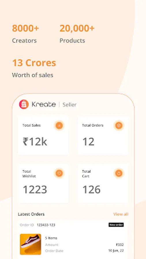 Kreate is your one stop solution which connects you to customers, with seamless order management and flawless product listing.