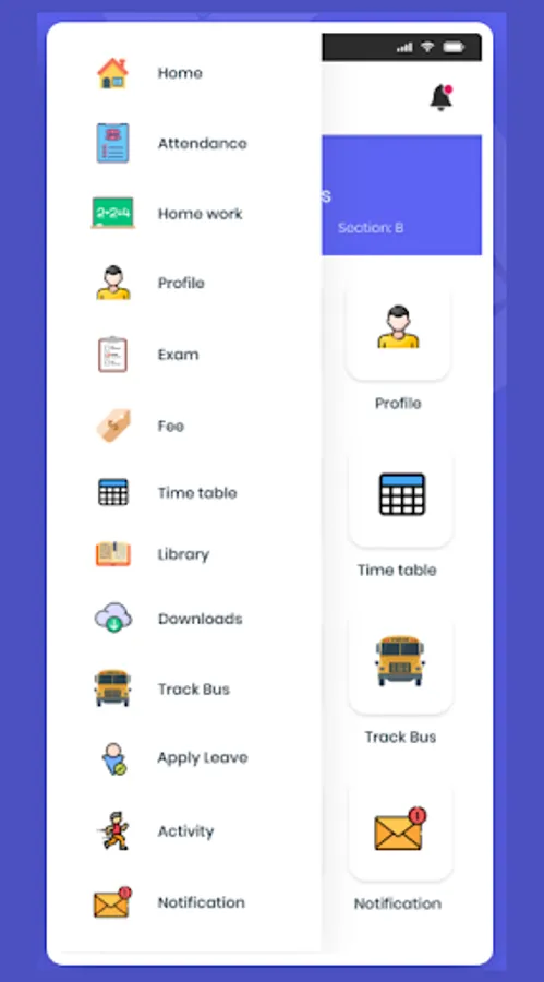 3. Access for admin, teacher, student and parent.