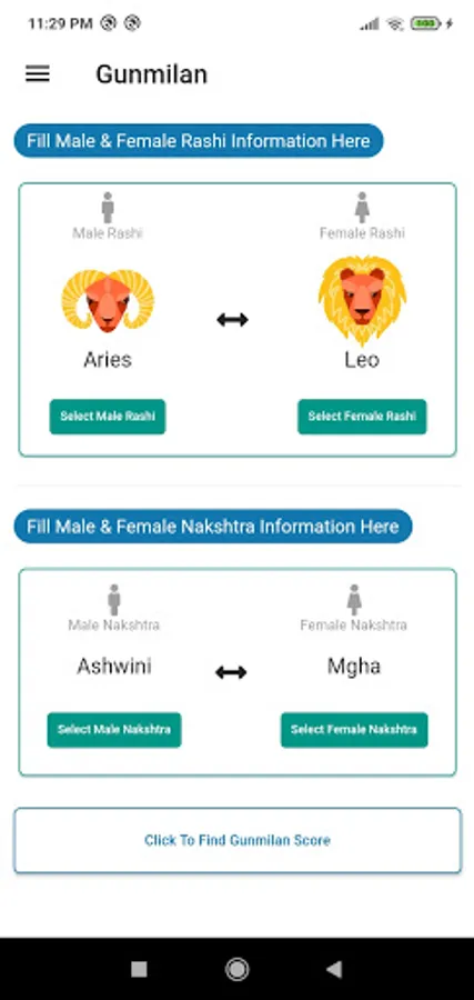 This is a introductory app for gun milan i.e kundali match score , this app does not collect your in detail information linke DOB, birth place and many more, it just requires a groom's and bride's rashi and nakshatra to find score according to panchang only.