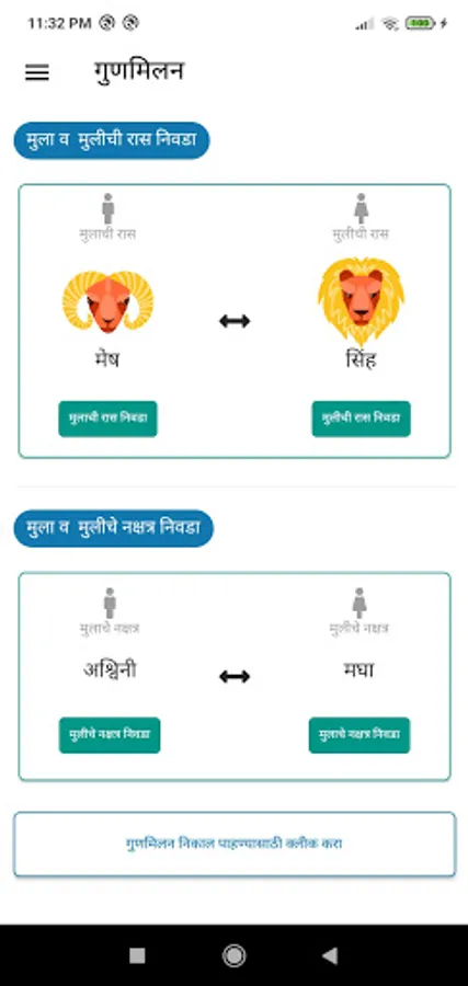 आता फक्त मुला मुलीच्या राशी आणि नक्षत्रा वरून किती गुण जुळतात ते फ्री पाहण्यासाठी आजच अँप डाउनलोड करा. गुणमिलन कॅल्क्युलेटर पूर्ण फ्री आहे.