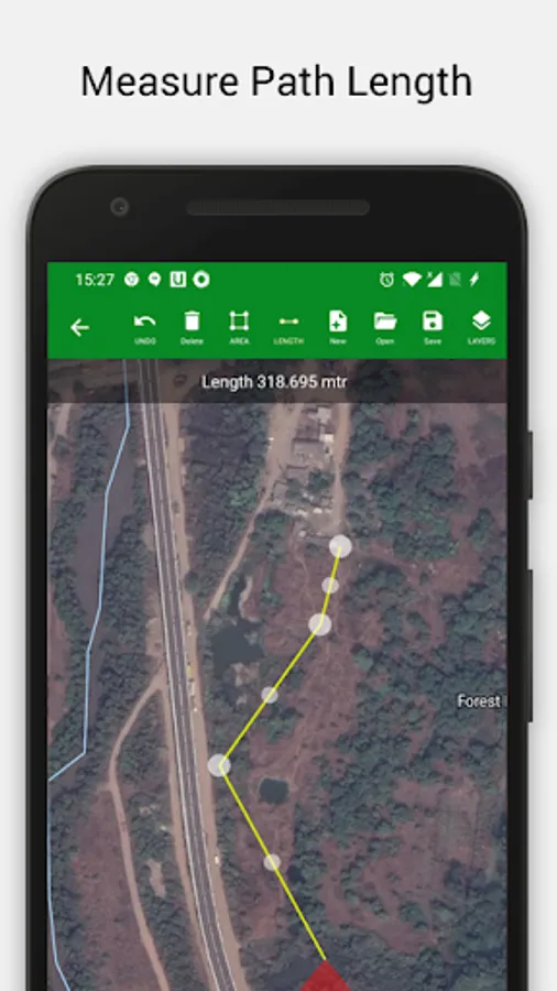 AreaCalc is a easy tool for measuring and saving any area and length on the map. Put up the points on map and create any shape and get the Area.