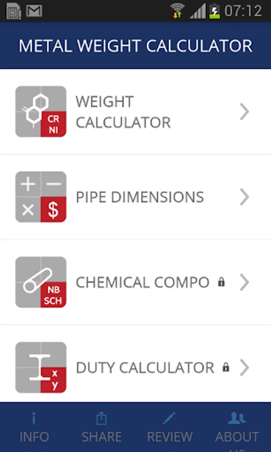 Metal Steel Calculator is a one stop app for all engineers, steel traders, fabricators, procurement officer, Proposal engineers to calculate steel weight, study chemical composition of different grades, evaluate custom duty of steel product, read the entire Strutural steel chart with diagrams. The application is uniquely designed to reduce manual calculations.